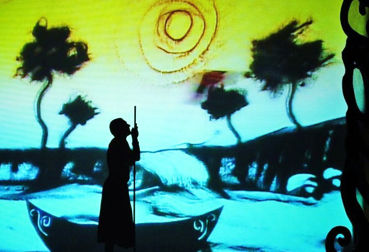 A su vez, los paisajes, que en su mayoría remitieron a muy bonitos bosques, desiertos asiáticos, entre otras cosas; fueron acompañados por música étnica (árabe e hindú, por ejemplo), tocada y cantada en vivo, al igual que los títeres proyectados en la pantalla por Natalia Gregorio.