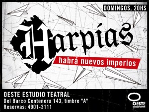 Harpías propone una versión libre de los últimos momentos de Hitler en su búnker, junto a Eva Braun, su secretario y la secretaria del secretario. La guerra ya se ha perdido y sólo resta esperar el final. Y mientras Martin procura guardar las formas; Frau Junge intenta funcionar donde ya nada funciona, Eva sueña con el beso de Adolf y busca refugio en sus aviones, el Führer se entrega a su destino, no sin antes desnudarse.
