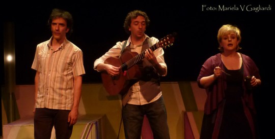 Por otro lado, Esteban Ruiz Barrea con su rol de El Juglar de Almagro, acompaña con su guitarra y repertorio de Chico Buarque, cada una de las escenas construidas por los actores. Pero no es un músico pasivo, sino que interactúa con ellos, además de musicalmente.