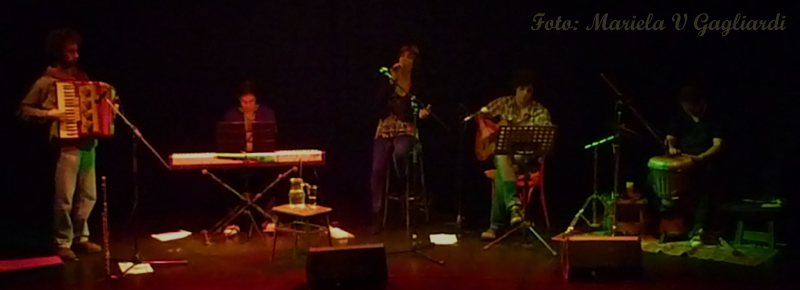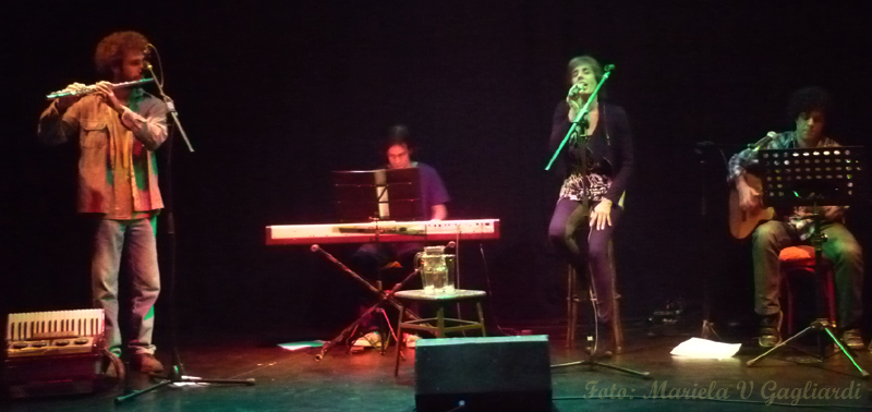 Cerca de las 22 hs ingresó Julia Moro junto a los músicos: Rafael Varela (Guitarra), Juan Rivero (Piano), Andrés García Strauss (Acordeón, Flauta traversa y Melódica) y Gonzalo Rujelman (Percusión).