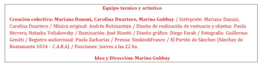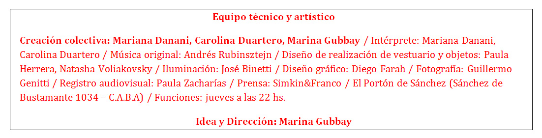Carolina Doartero y Mariana Danani, expresan sus sentimientos y pesares a través de la danza contemporánea. Indagan nuevas formas y mecanismos de recrear su pequeño mundo.