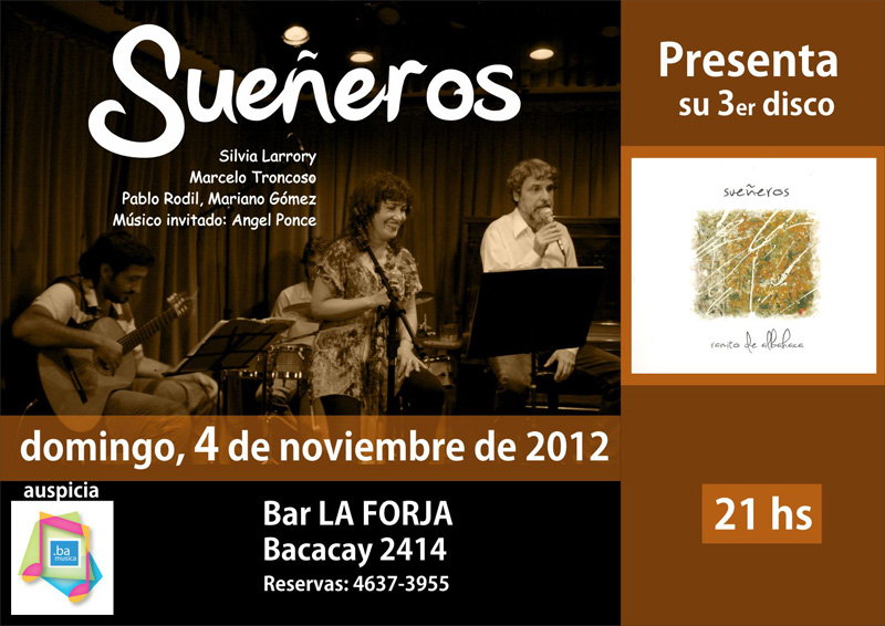 Este domingo 4 de noviembre, Sueñeros presentará su nuevo disco llamado «Ramito de albahaca». El recital comenzará a las 21 hs en Bar La Forja (Bacacay 2414 – C.A.B.A).