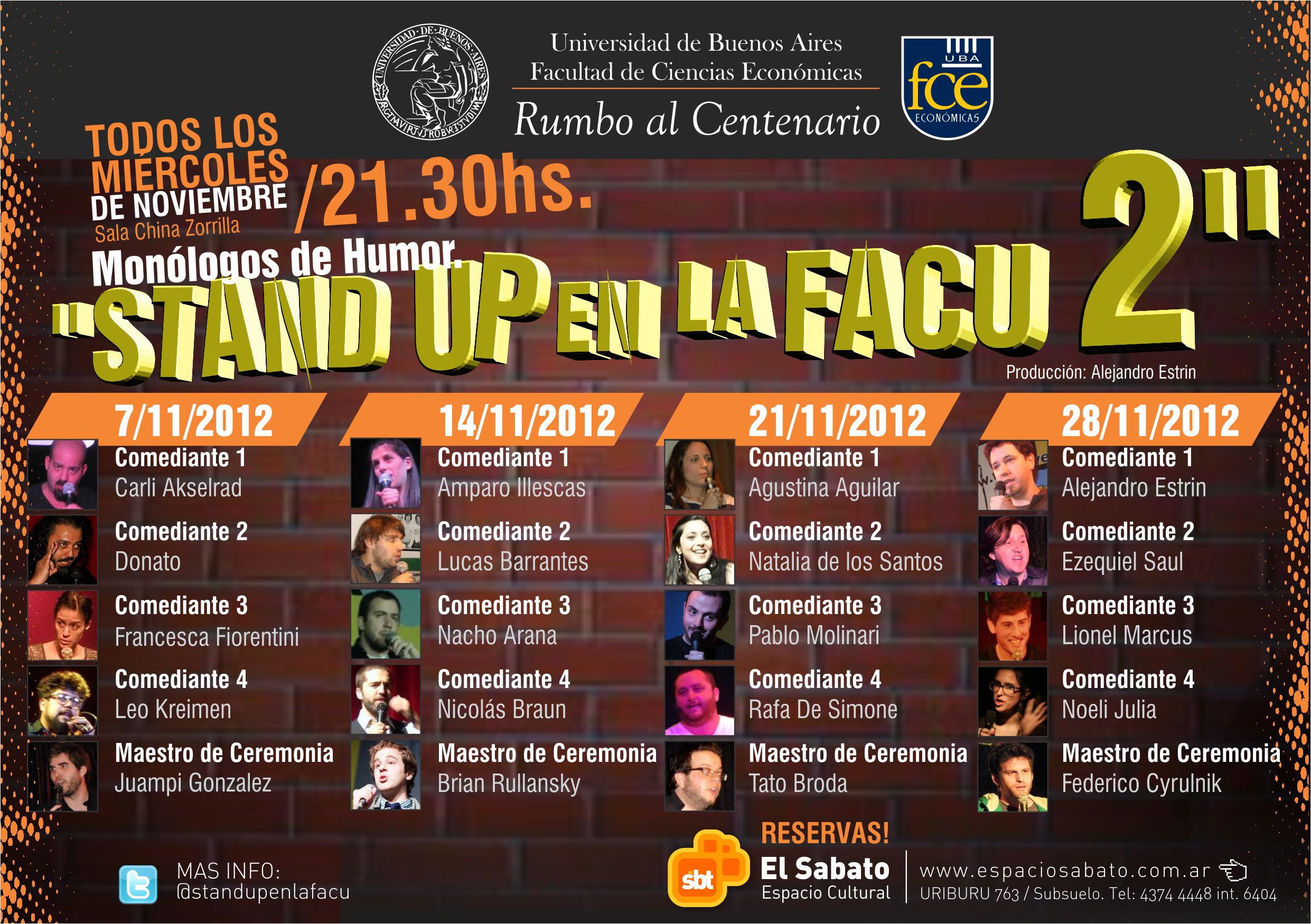Actúan: Agustina Aguilaar, Carli Akselrad, Nacho Arana, Lucas Barrantes, Nicolás Braun, Tato Broda, Federico Cyrulnik, Natalia de los Santos, Rafa De Simone, Donato Donato, Alejandro Estrin, Francesca Fiorentini, Juampi Gonzalez, Amparo Illescas, Noeli Julia, Leo Kreimen, Lionel Marcus, Pablo Molinari, Brian Rullansky, Ezequiel Saul / El Sábato Espacio Cultural (Uriburu 763 – C.A.B.A) / Las funciones son los miércoles a las 21.30 hs / Localidades $30.