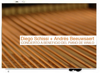 Sábado 10 – 17 hs – $60 Concierto a beneficio del piano de Vinilo Diego Schissi (Piano) Andrés Beeuwsaert (Piano