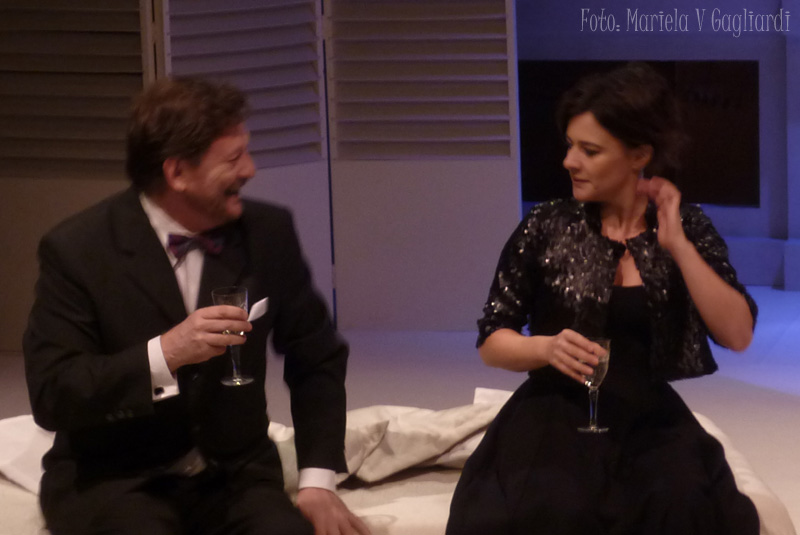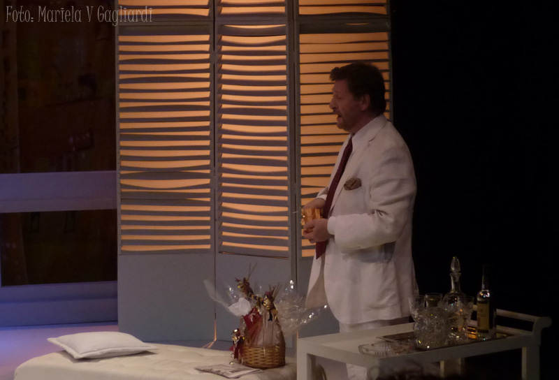 Una escenografía muy fina y delicada, en tonos blancos, con un ventanal enorme -a través del cual se divisa Roma-; nos invitan a presenciar una historia contada por Virginia Innocenti y Osmar Nuñez -quienes representan a Anna Magnani y Tennessee Williams- respectivamente.
