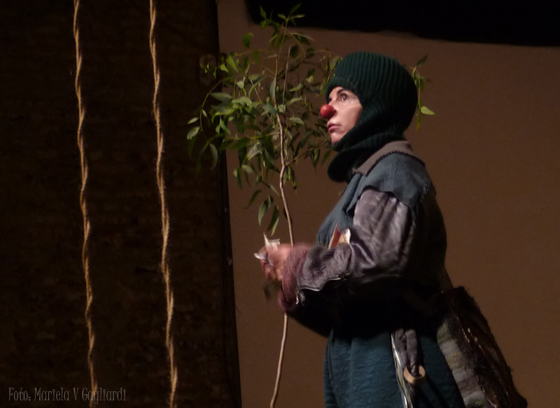 Mare, en un instante de la obra se pone en el público y se replantea para que están puestos los elementos en el escenario y de esa manera. No tienen unidad, dice. Así es como logra más complicidad con los espectadores, quienes se encariñan con ella y su personaje.
