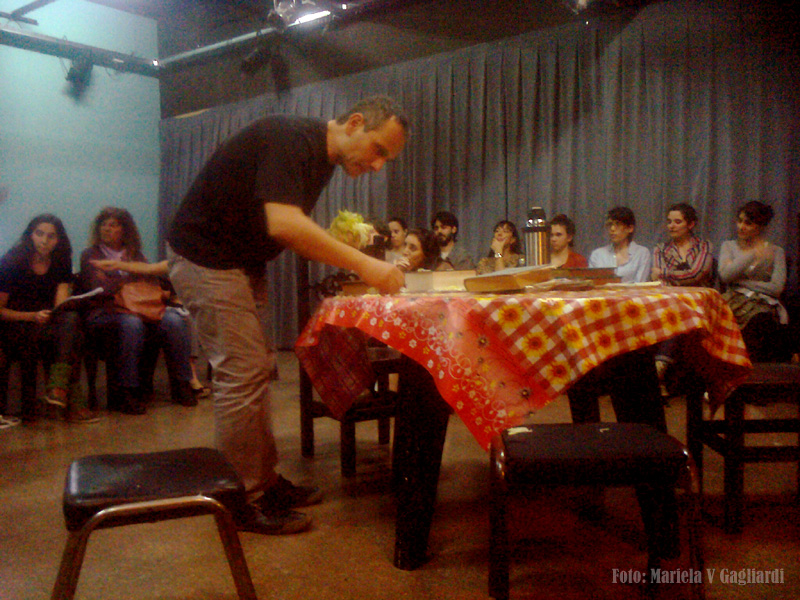 Ignacio Apolo –quien dirige esta obra-, ingresa en cierto momento a escena con el guión en la mano, lo cual sorprende por lo que entendemos (estructuralmente) que se debe hacer en vivo.