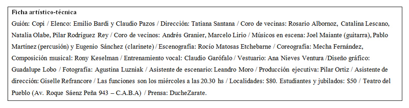 El personaje picaresco, chanta y adorable que encarna Emilio Bardi en los suburbios de un conventillo, donde vive con La Raulito (Claudio Pazos), su compañera, es una de las cuestiones más sobresalientes de la pieza teatral de Copi -dirigida por Tatiana Santana-.