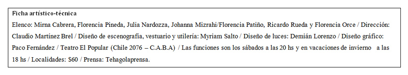 Otra de las cuestiones a destacar es la coordinación dada entre los movimientos de los artistas y la música. Este aspecto es interesante, llamativo y permite más dinamismo durante los distintos actos en que se va resolviendo la obra.