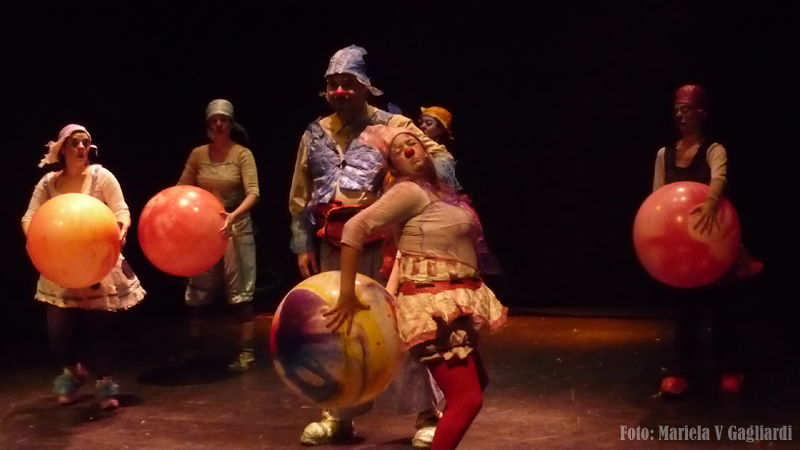 golpéandolo con pelotas grandes y buscando la complicidad de los espectadores.