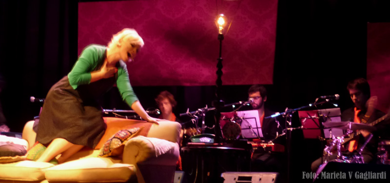 Nothing wanna take my world – Nada va a cambiar mi mundo (Across the universe, The Beatles). Y así comienza el musical que tiene como protagonista a Gabriela Bevacqua en “Desde el sillón” (de y dirigida por Emmanuel De Martino), una obra que solo precisa de ella como actriz y cantante. Una obra llena de magia escénica, donde todo transcurre en el mismo espacio: un sofá con almohadones estéticamente muy bellos, una mesita de luz con velador de pie y un teléfono de antes.