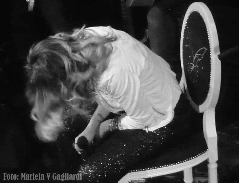 Ella, pisando fuerte, feliz, radiante e intentando cautivarnos con su bella voz, sin decepcionarnos. Y claro que no nos decepcionó ni dejo de cautivar. Nos atrapó de comienzo a fin y nos hubiera encantado que durara horas el recital.
