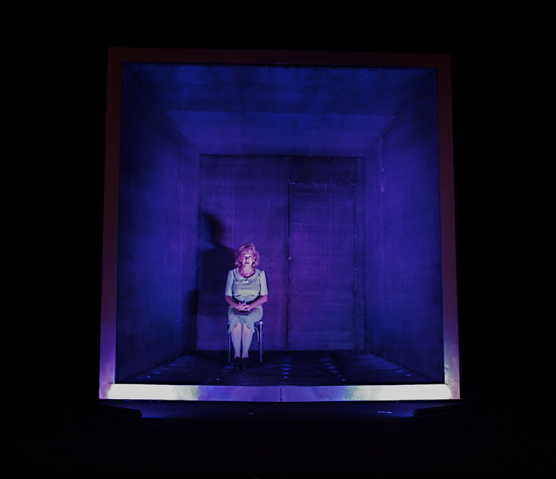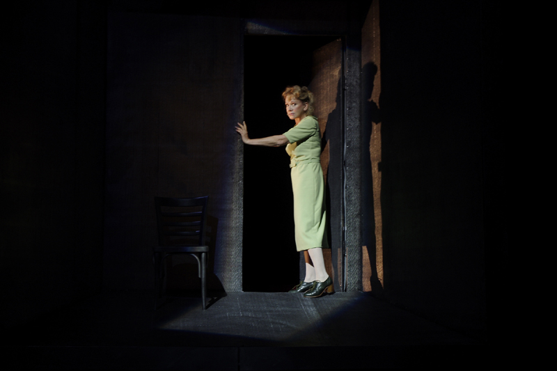 Una pequeña escenografía en perspectiva y con una simple silla, son el marco que acompañan a Soledad Silveyra durante todo su relato.