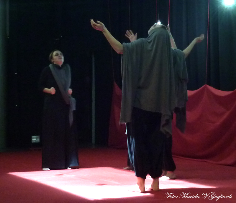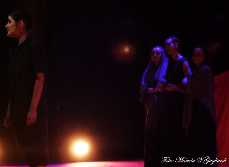 Ellas van desdoblándose en distintos personajes, a medida que se sucede el relato y -lo interesante e impactante- es qué tipo de armas utilizan para combatir el mal. Ellas no tienen ametralladoras sino telas que las representan y balas que impactan con efectos sonoros. Esa es una de las distinciones que se plasman en el escenario y que conforman al equipo en una unidad orgánica.
