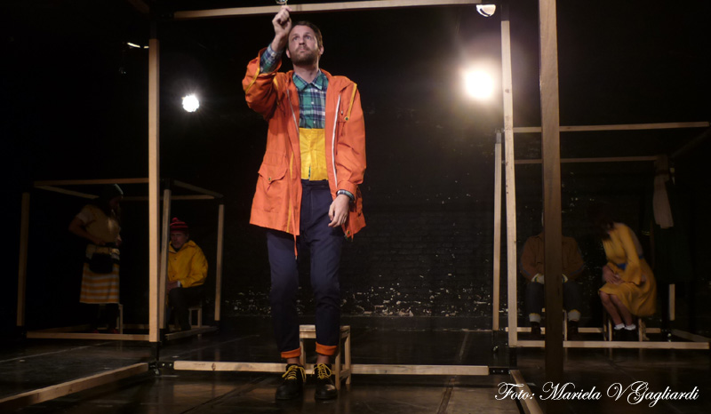 vecinos, armados, (Javier Pedersoli, Fernanda Pérez Bodria, Eduardo Iácono, Natalia Olabe y Martín Speroni) que buscan algo muy específico de él: su complicidad. Aunque él no entiende qué es lo que pasa, ni en qué puede ayudar, termina aceptando -ya que no le dejan otra alternativa-. Desde un primer momento le comentan que están buscando a Teo y necesitan hallarlo urgentemente. Diez hipótesis serán las encargadas de ir mareando y sacando de las casillas al protagonista.