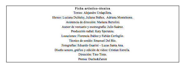 Las abejas son asociadas con una sustancia dulce que es la miel. Muy empalagosa pero más nociva que la azúcar. En esta oportunidad Miel de avispas (textos de Alejandro Urdapilleta y dirección de Tino Tinto) demuestra que también estos insectos son capaces de producirla. Se dice que hay ciertas especies venenosas y en éstas comenzaré el relato, el mismo que se origina en un estudio radial, durante un programa conducido por tres mujeres (Luciana Dulitzky, Juliana Ibañez y Adriana Monteleone) un tanto particulares.