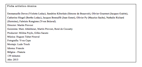 Pero, también, se produce un momento crucial para la vida de Violette y se trata de conocer a Jean Génet y Sartre. Ambos se vuelven fundamentales para toda su carrera, tanto en el plano de la escritura como sentimental.