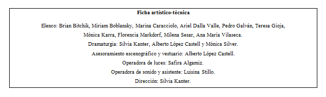 “Para temprano es tarde” (escrita por Silvia Kanter, Alberto López Castell y Mónica Silver; dirigida por Silvia Kanter) esboza, a partir de diferentes sketchs, la importancia del tiempo. Esas agujas del reloj que tantas veces nos condenan o nos hacen arrepentir sobre acciones no realizadas.