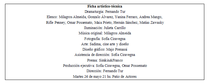 El agotamiento físico y mental, las exigencias, la búsqueda del perfeccionismo, el caos de la ciudad, las presiones sociales y propias, entre algunos de los problemas más recurrentes; nos permiten saber que estamos en presencia de un “Surmenage” (escrita por Milagros Almeida y Fernando Tur, dirigida por éste último).