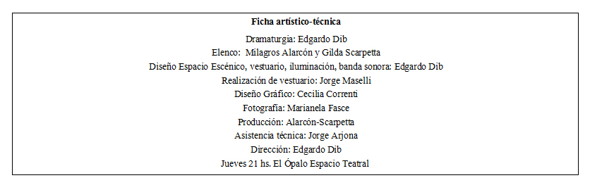Milagros y Gilda, merecen ser destacadas tanto por los personajes que realizan en escena, como por el acento que requiere cada uno de ellos, por los cambios de vestuarios inmediatos, por la composición de máscaras en sus rostros, por la excelencia y respeto por un género tantas veces menospreciado por un sector de la sociedad.