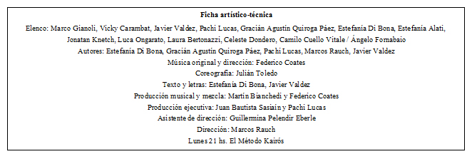 «Borratex» (con texto y letras de Estefanía Di Bona y Javier Valdez; dirigida por Marcos Rauch) ganó el Concurso de Teatro Musical 2014 de la Fundación Julio Bocca y acaba de estrenar en el Método Kairós, brindando una función llena de pasión y a sala llena.