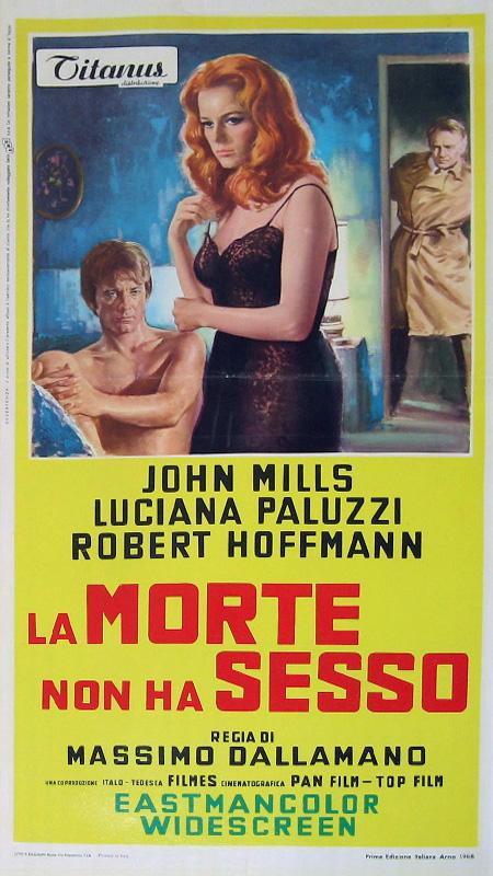 (La morte non ha sesso / Black Veil for Lisa, Italia-1968) de Massimo Dallamano, c/John Mills, Luciana Paluzzi, Robert Hoffmann, Renate Kasché. 95′. Un policía fatigado descubre que no hay que casarse con la mujer fatal de Operación Trueno. Eficaz policial en el que sexo resulta ser la causa de todos los desastres.
