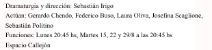 Actúan: Heidi Fauth, Diego López Domínguez, Pedro Maurizi, Rodrigo Paredes