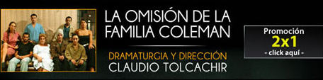 La omisión de la familia Coleman escrita y dirigida por Claudio Tolcachir se presenta en la sala Pablo Neruda del Paseo la Plaza los viernes y domingos, en el marco de los festejos de laduodécima temporada de actividad teatral ininterrumpida. Al día de la fecha, la obra éxito del off, que es aplaudida por los más diversos públicos, cuenta con la realización de 1724 funciones, fue vista por más de 246.080 espectadores, lleva realizadas 305funciones en el extranjero y participó en 50 festivales internacionales visitando 22 países.