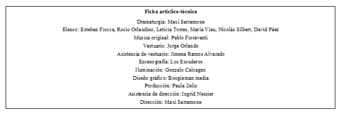 Dramaturgia y dirección: Luis Longhi Actúan: Maia Francia, María Viau, Pablo Sórensen y Sebastián Politino Funciones: Sábados, 18 hs Teatro El Tinglado